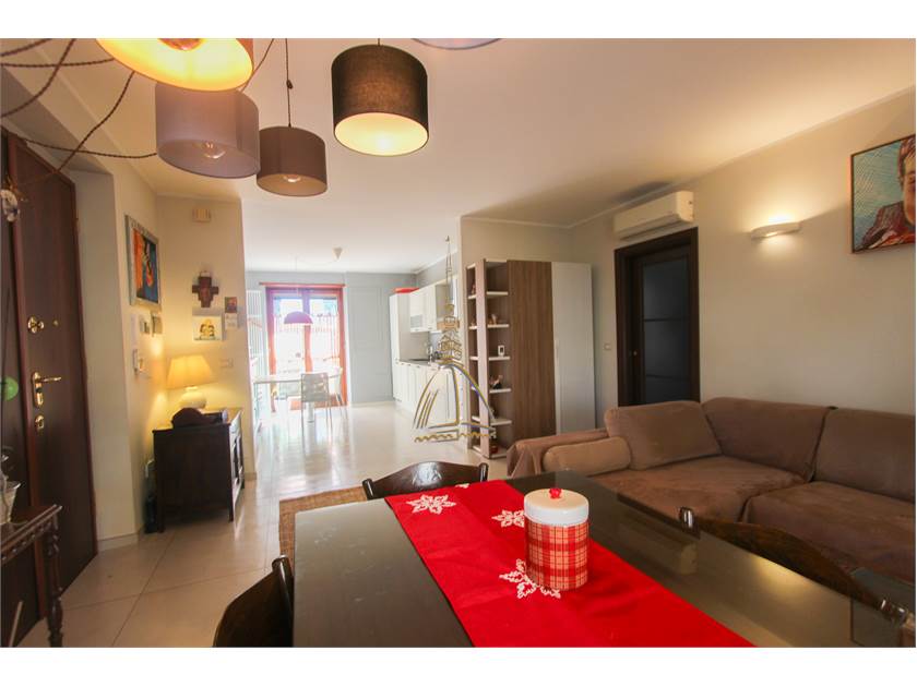The entrance leads into a spacious living room, warm and welcoming, perfect for shared moments. The adjacent and functional kitchen opens onto a large livable terrace, ideal for a summer dining area or a relaxing corner at sunset.