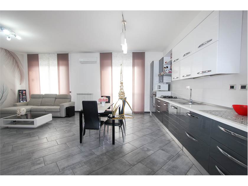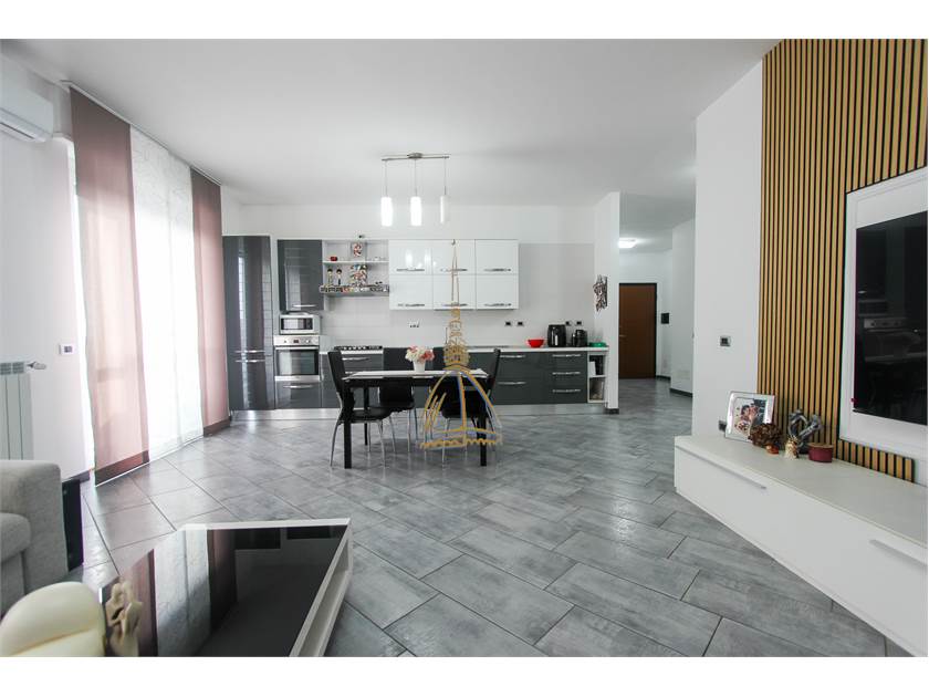 The entrance opens onto a spacious and bright triple living room with a perfectly integrated kitchenette: a space designed for living, sharing, and dreaming.